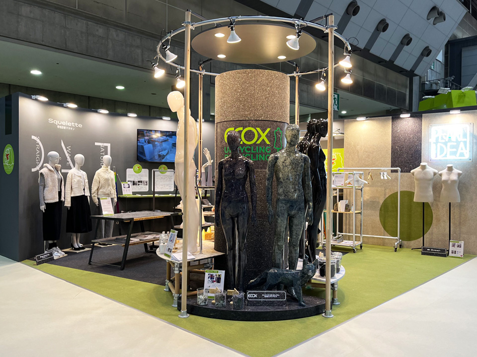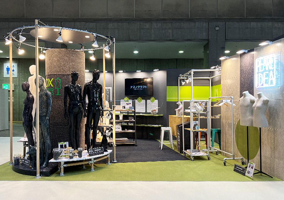 「地球にやさしいお店づくりのシン定番」をテーマに、マネキン・什器・商品陳列ツール・装飾備品などお店づくりに必要なサスティナブルアイテムをご提案しました。