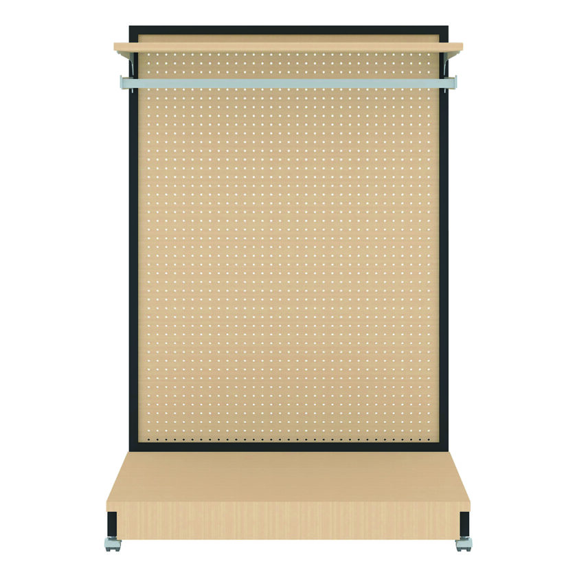 組み合わせを変えることで、使用スペースやMD構成にフレキシブルに対応できます。パネルは有孔ボードを標準として、ビジュアルやサインの打ち出しも可能です。