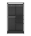組み合わせを変えることで、使用スペースやMD構成にフレキシブルに対応できます。パネルは有孔ボードを標準として、ビジュアルやサインの打ち出しも可能です。