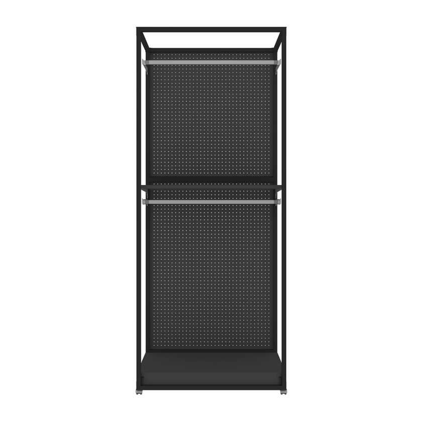 組み合わせを変えることで、使用スペースやMD構成にフレキシブルに対応できます。パネルは有孔ボードを標準として、ビジュアルやサインの打ち出しも可能です。
