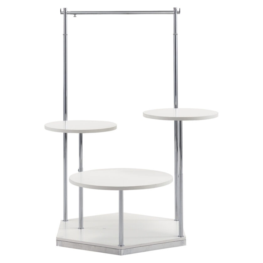 六角形=HEXAGONをモチーフとしたフレーム什器。ラック、テーブル、ステージなどパーツ次第でフレキシブルに対応し、空間に軽やかなリズム感を生み出します。
