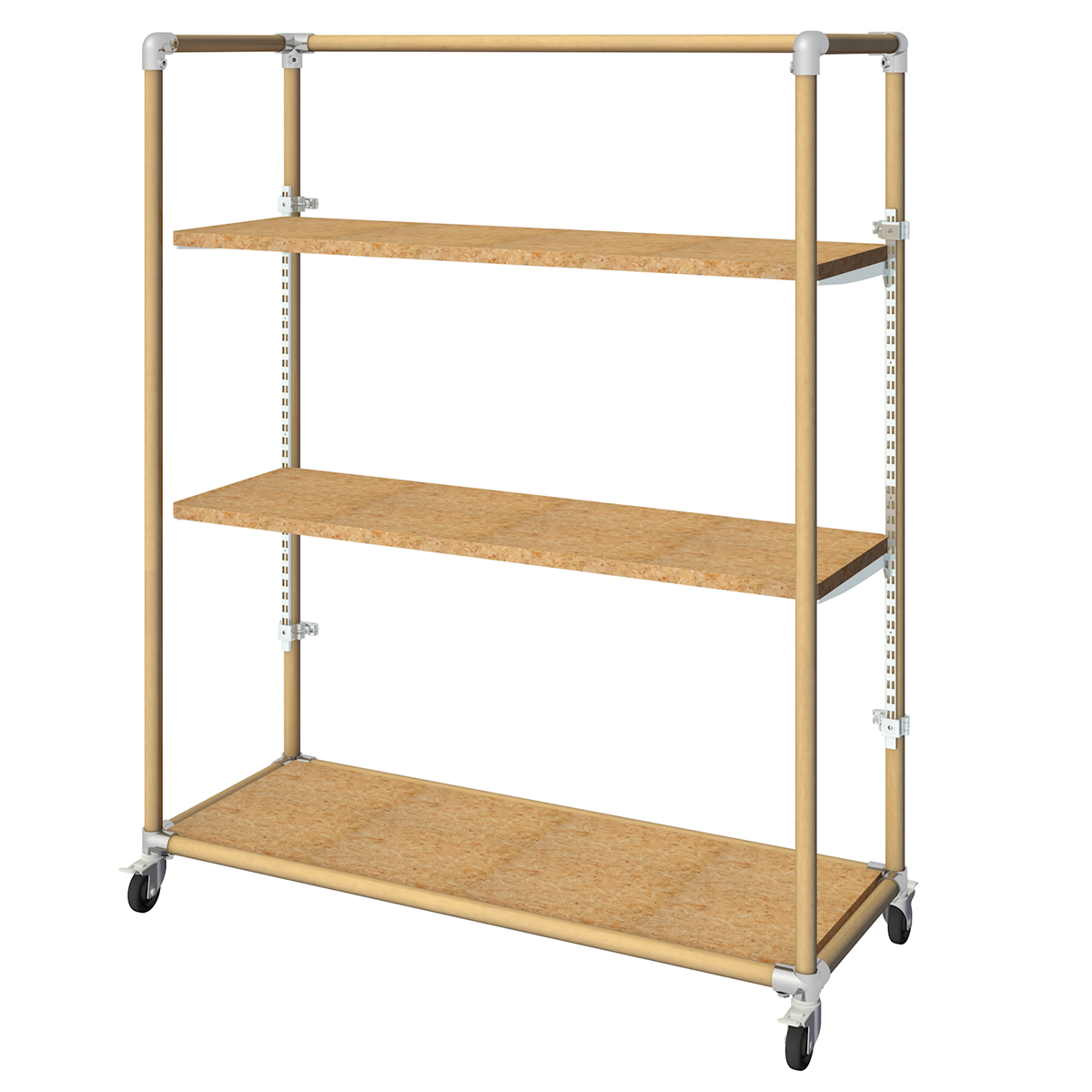 アルミ単管パイプ:リサイクル可能なアルミ材 広葉樹(木菅):間伐材を製材したECO素材 OSB材:間伐材をチップ状にし、プレスした合板