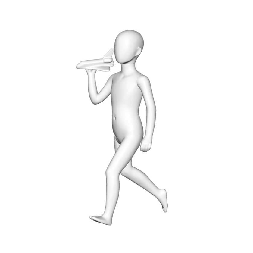 「公園で遊ぶ子どもたち」の楽しげな瞬間を、そのままディスプレイに映し出したキッズマネキンです。犬やスケートボードなどのプロップスを組み合わせれば、自然で楽しい風景がすぐに完成します。100〜150cmの6サイズ展開、ボーイズ・ガールズ共通デザインなので、服のスタイリングでさまざまな表情を演出できます。脚は可動式で、ポーズが大きくても着せ替えの負担を軽減。温かみと親しみを感じさせるディスプレイに最適なシリーズです。