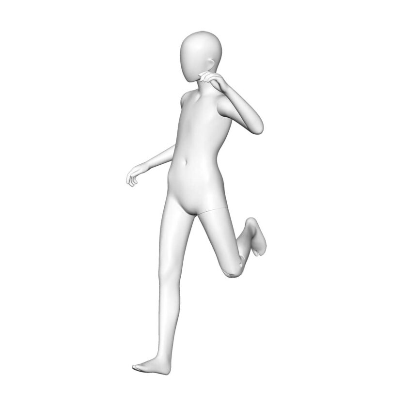 「公園で遊ぶ子どもたち」の楽しげな瞬間を、そのままディスプレイに映し出したキッズマネキンです。犬やスケートボードなどのプロップスを組み合わせれば、自然で楽しい風景がすぐに完成します。100〜150cmの6サイズ展開、ボーイズ・ガールズ共通デザインなので、服のスタイリングでさまざまな表情を演出できます。脚は可動式で、ポーズが大きくても着せ替えの負担を軽減。温かみと親しみを感じさせるディスプレイに最適なシリーズです。