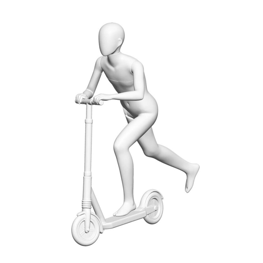 「公園で遊ぶ子どもたち」の楽しげな瞬間を、そのままディスプレイに映し出したキッズマネキンです。犬やスケートボードなどのプロップスを組み合わせれば、自然で楽しい風景がすぐに完成します。100〜150cmの6サイズ展開、ボーイズ・ガールズ共通デザインなので、服のスタイリングでさまざまな表情を演出できます。脚は可動式で、ポーズが大きくても着せ替えの負担を軽減。温かみと親しみを感じさせるディスプレイに最適なシリーズです。