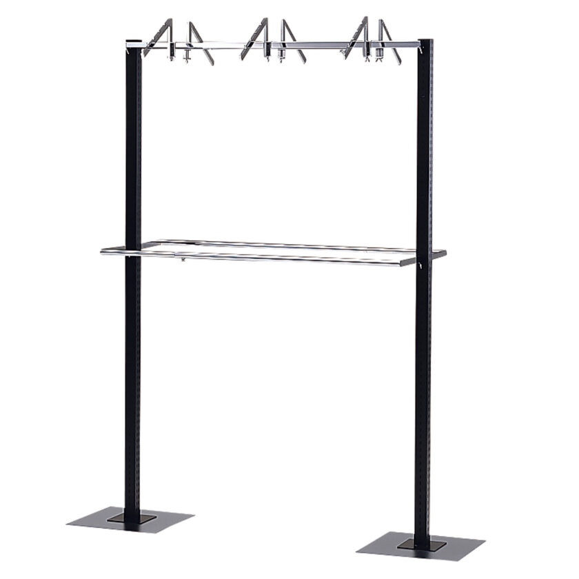 スペースに合わせて柔軟にレイアウトが出来るポール什器。ジョイントパーツの使用で高さも変えられます。