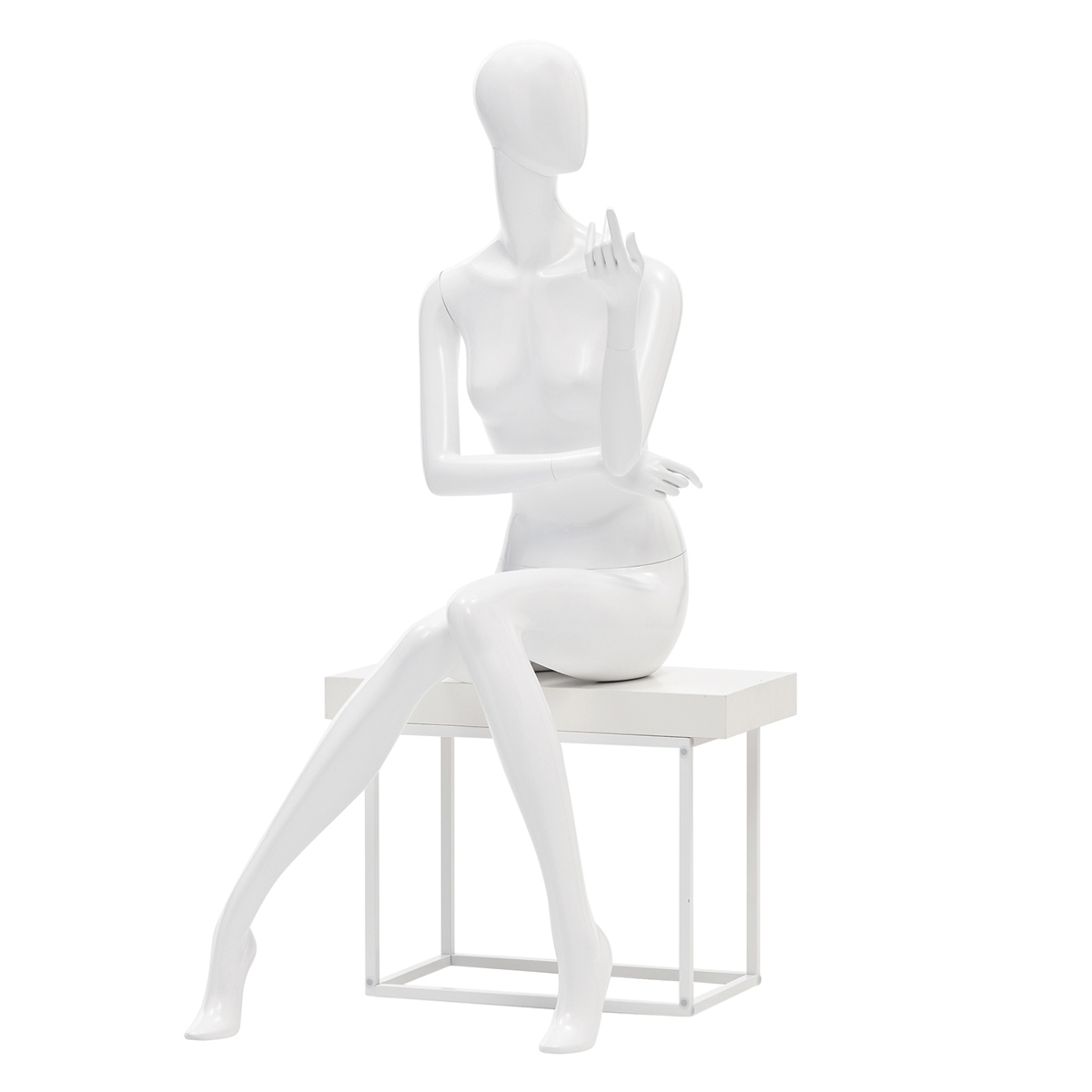 Sラインを強調した表情豊かなシルエットマネキンで、ヤングキャリアからキャリアまで幅広い展開が可能です。長めの首と、大きく体をひねったシルエットは、動きのある独特な存在感をアピールできます。プレヒールは磁石によって簡単に装着でき、靴が無くても足元をきれいに演出します。