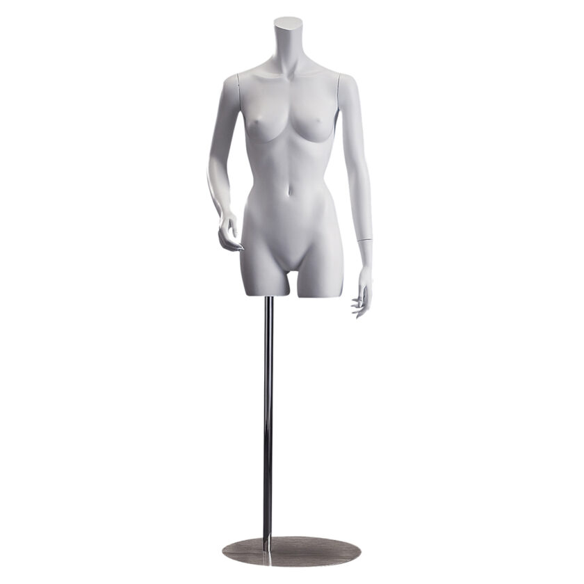 人体の一部をかたどった販売支援ツールです。トップス、ボトムスを立体的に演出します。