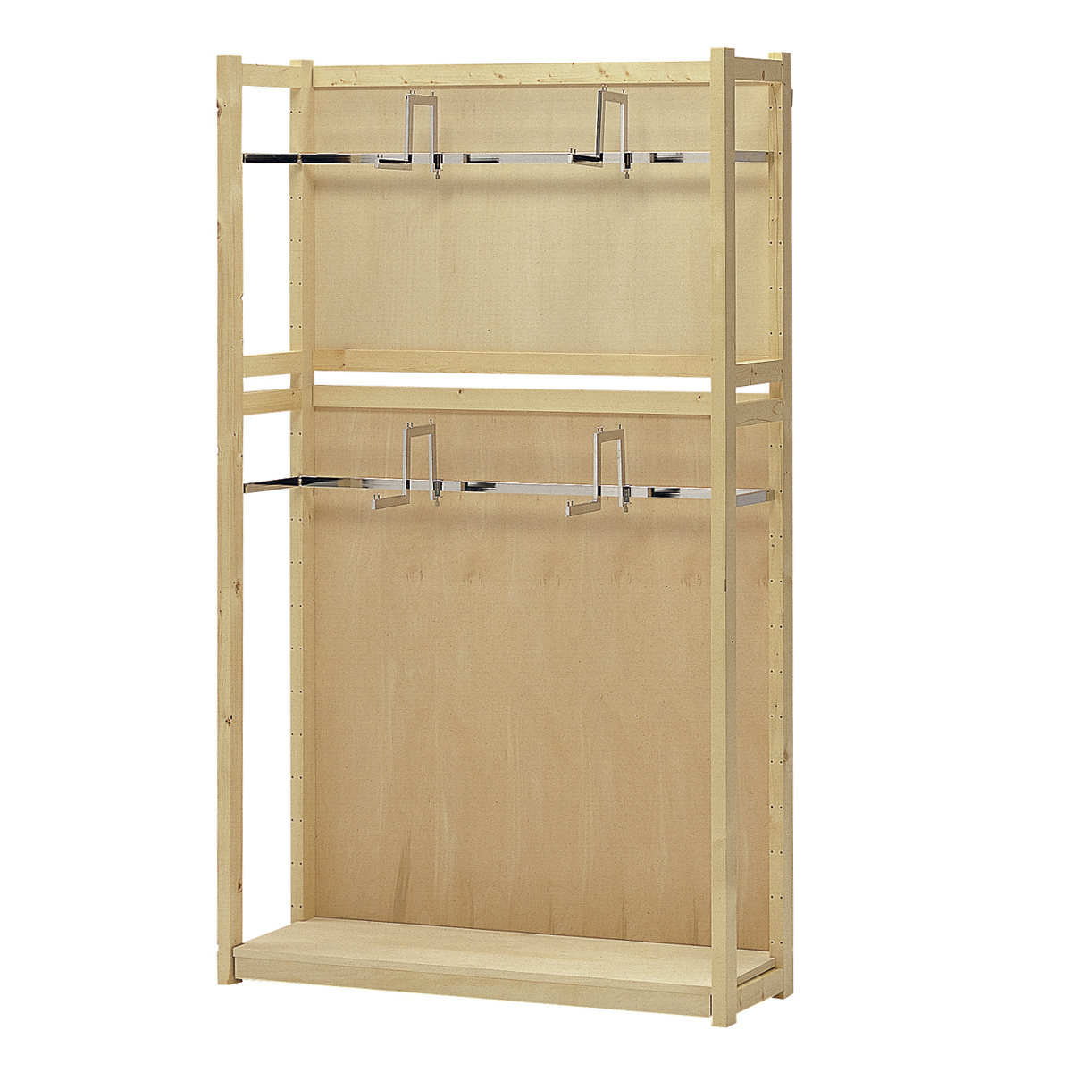 ナチュラルな木製什器。壁面タイプやアイランド、テーブルまでラインナップしています。