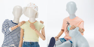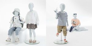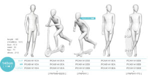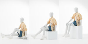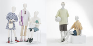 体型はボーイズ・ガールズ共通で使えるデザイン。着せたい商品や売り場に合わせて、自由に構成ができるマネキンです。