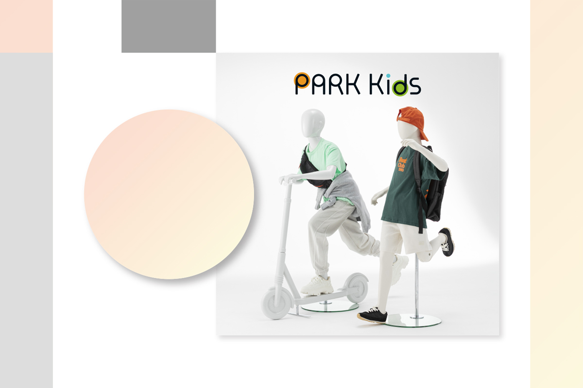 「PARK Kids(パークキッズ)」は、単なる展示道具ではなく、子ども服の世界観を伝えるストーリーテラーであり、 売場の空気を変える存在です。 「自分たちの売場に合うかたち」を選べる柔軟さを備え、ショップに新しい表現力をもたらします。