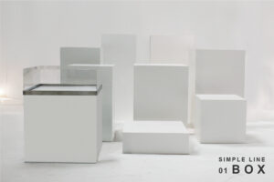 店舗での商品陳列やディスプレイに活躍するのが「SIMPLE LINE 01 BOX」。 お客様の目線に近い場所で直接商品に触れていただいたり、マネキンなどのディスプレイステージやショーケースとしてイメージ訴求し、お客様の購買意欲を高めたりと、シンプルな箱でありながら重要なアイテムのひとつです。