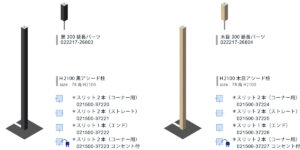 カラーは黒と木目の2色展開。 H2100mmの基本ポールにH300mmのパーツをジョイントすることで、最大H2400mmの高層什器としても使用可能です。