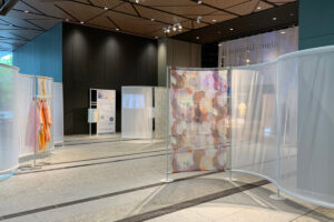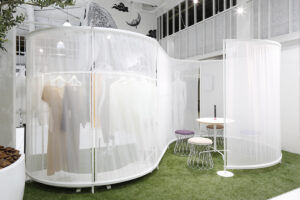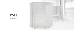 “Personal Space For Exhibition / Experience / Emotion” の頭文字から名付けられたスクリーン什器「PSFE(ピーエスエフイー)」。 空間を「ゆるやかに仕切る」ことで、心地よい距離感と体験を提供します。