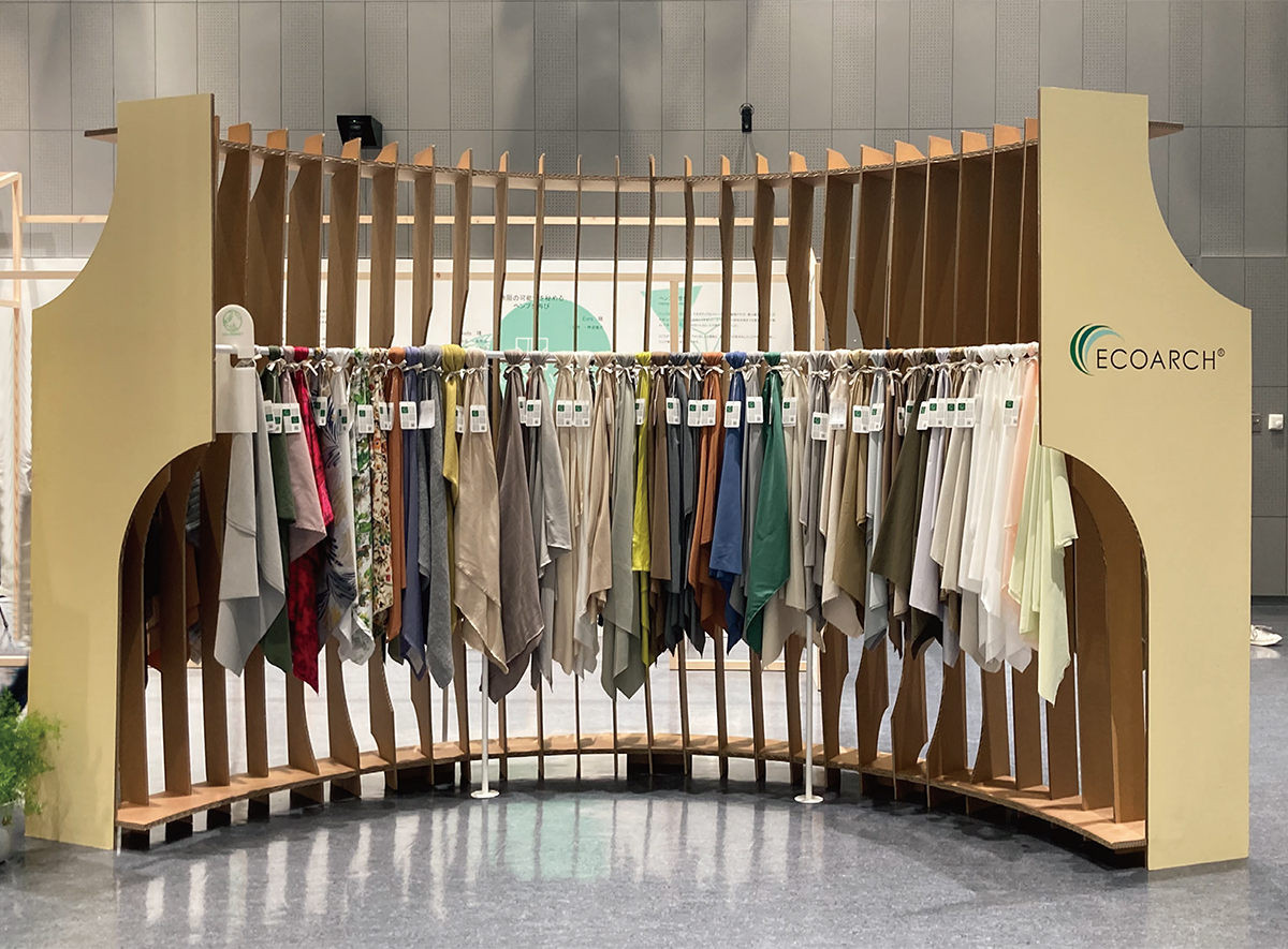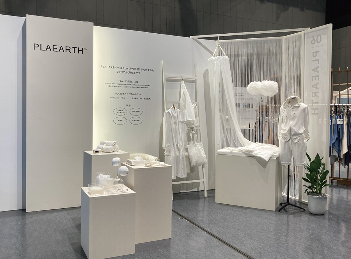 リサイクルできるダンボールで製作したアーチ形什器や間伐材を使用したブースのほか、3D映像など展示物を引き立たせる見せ方で12ブースを展開。