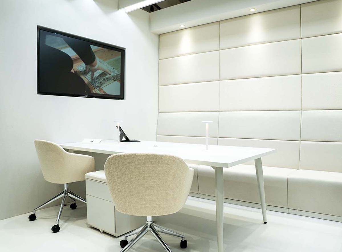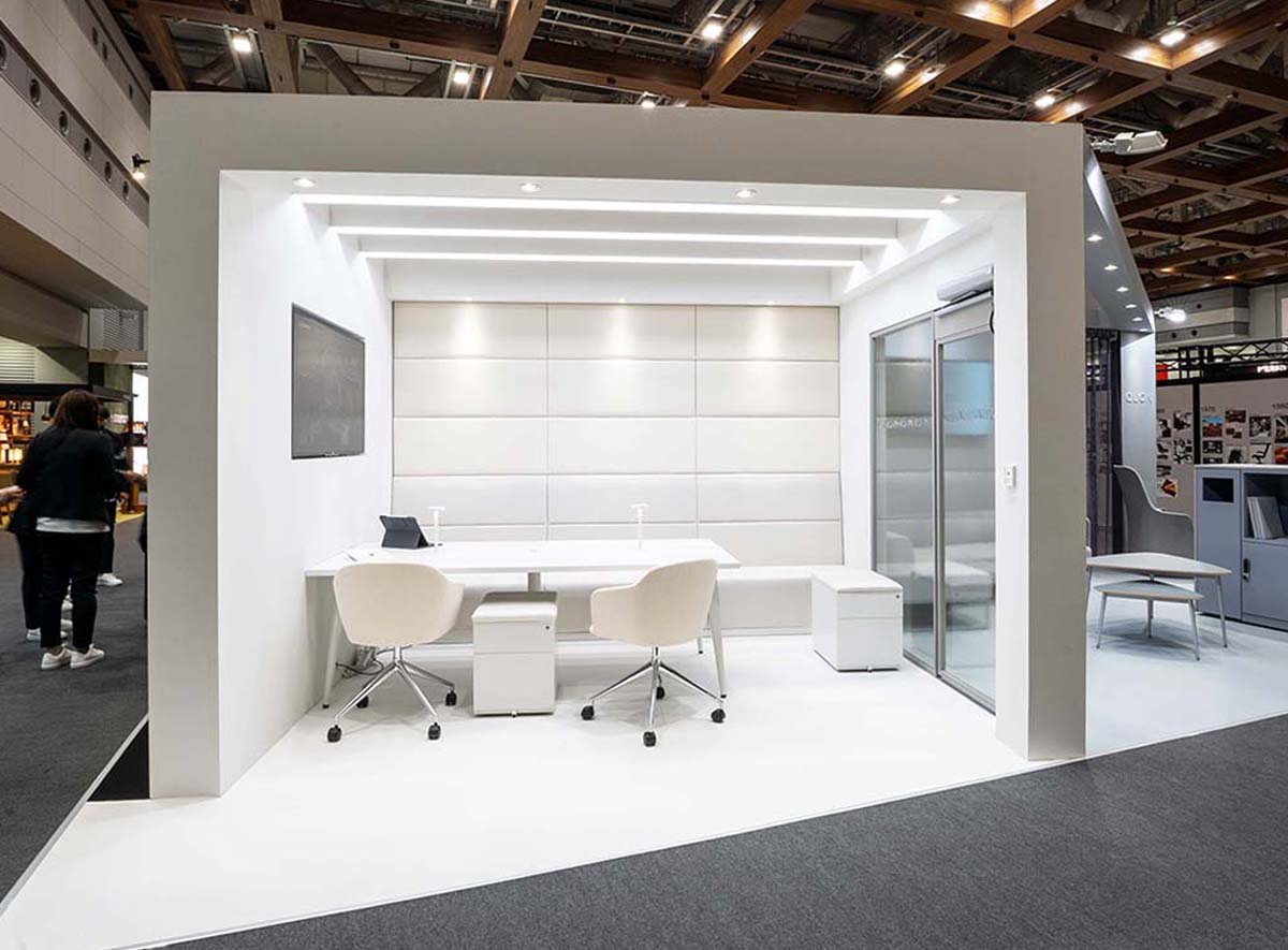 最先端のオフィスデザインとワークスタイルを提案するドイツ発・日本初上陸のオフィス家具展示会「オルガテック東京2022」出展ブース。