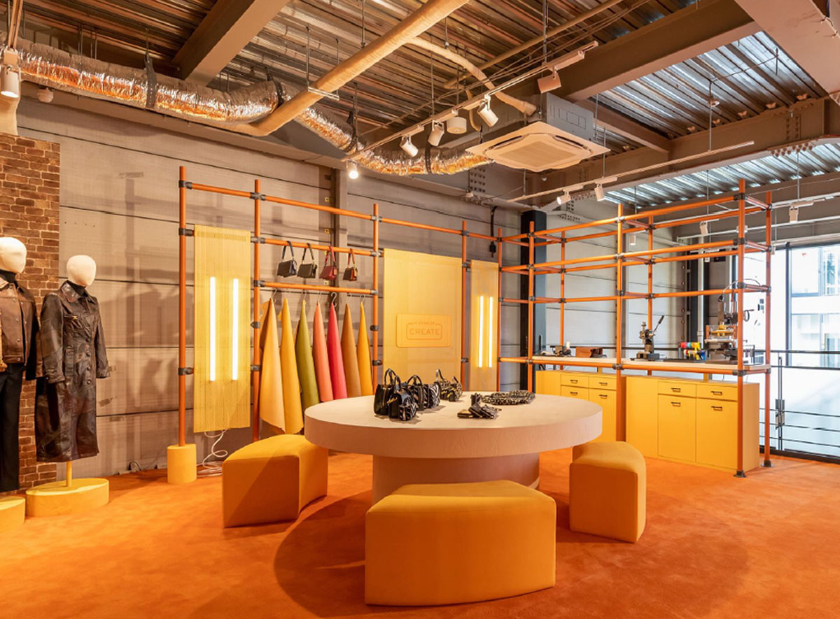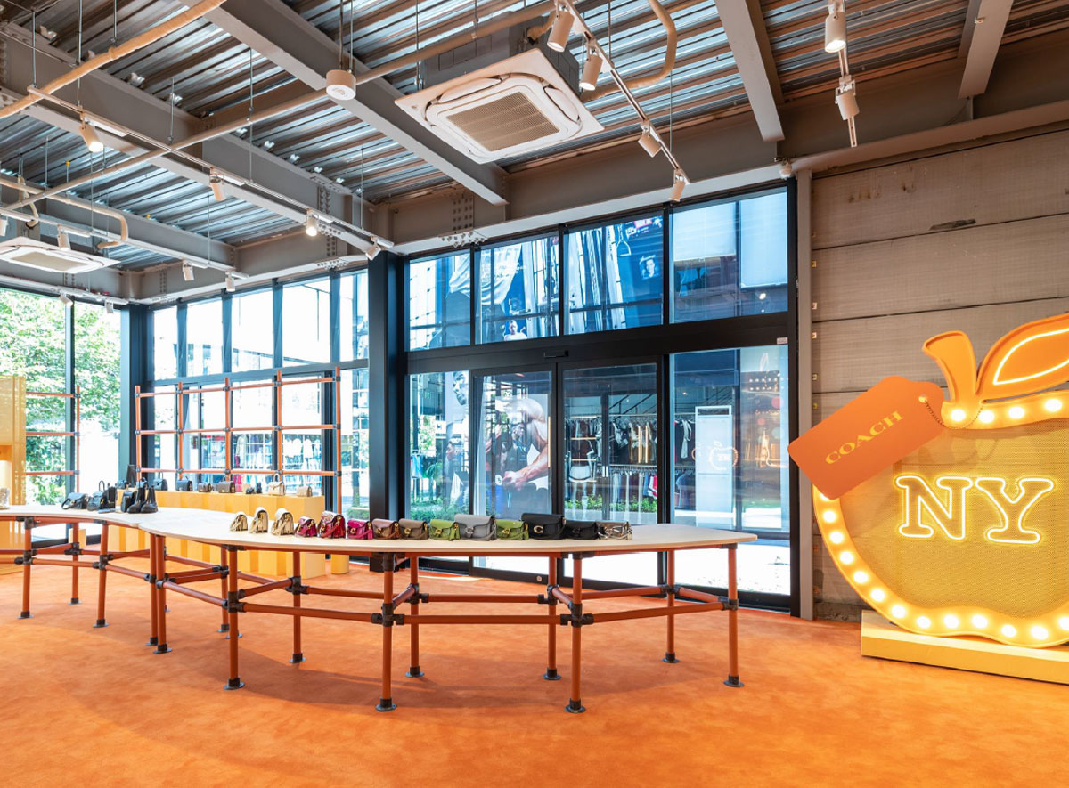 COACH NY デザインチーム監修の元、本国(US)からの支給品と当社製作品を組合せ、同ブランドフォールシーズンのテーマ「Wear Your Shine」の世界観を表現した。中でも、ファサードに組まれたユニークな足場にご注目。