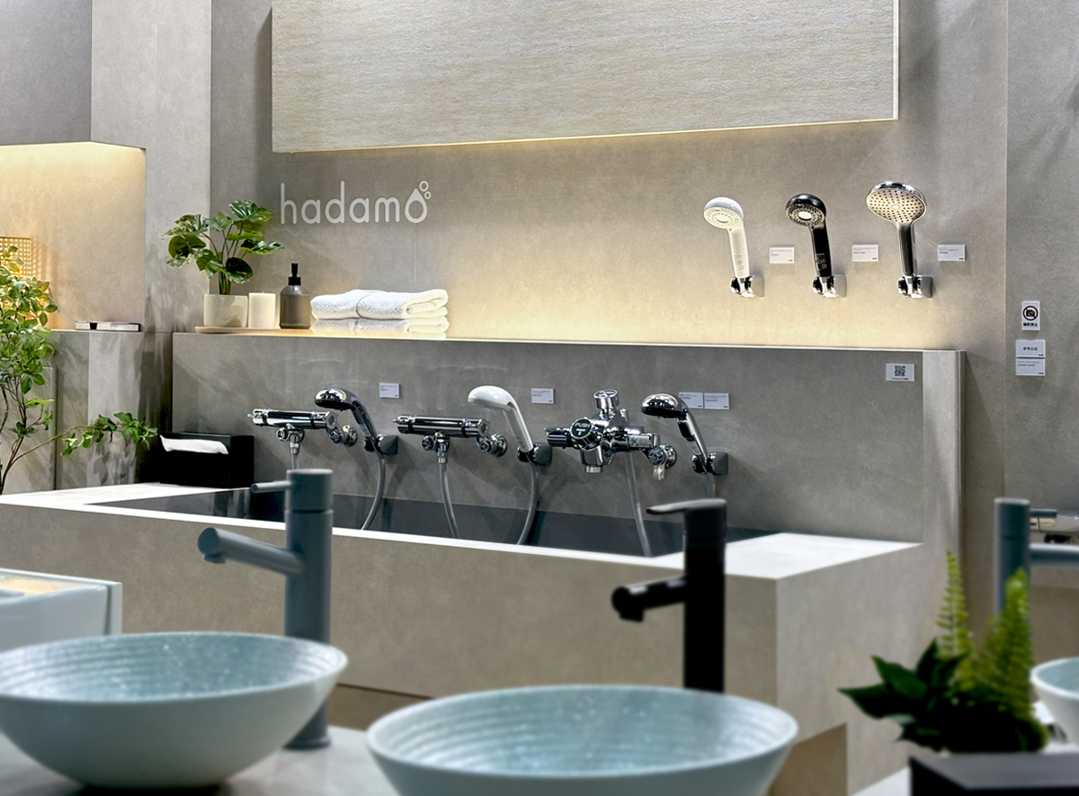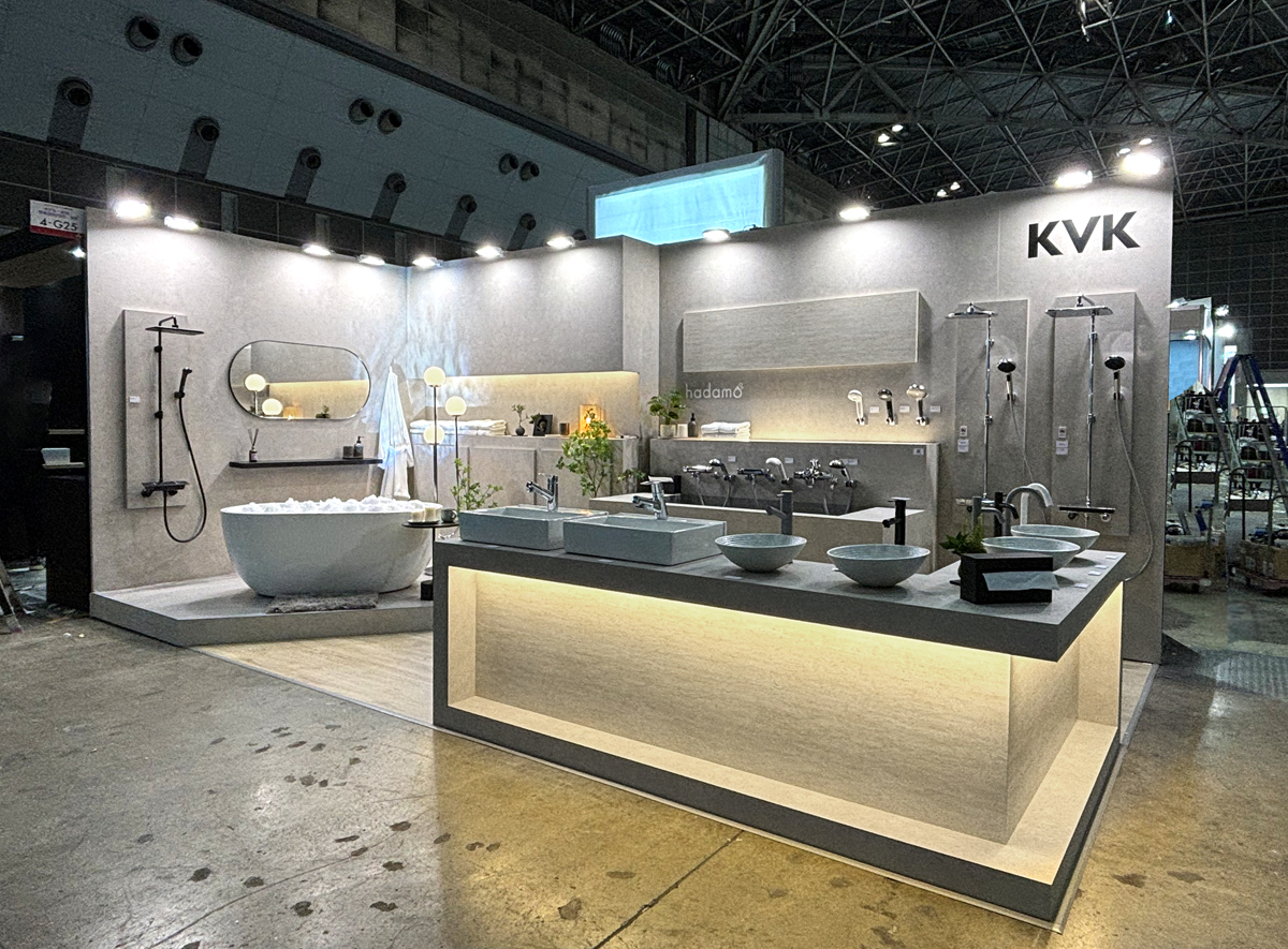 ホテルのようなマテリアル感と和風のしつらえで和洋折衷を意識したブースデザイン。