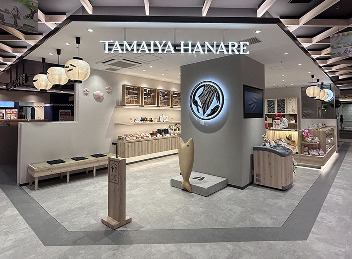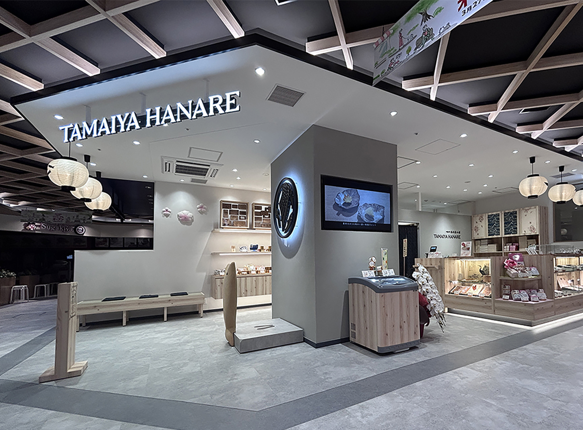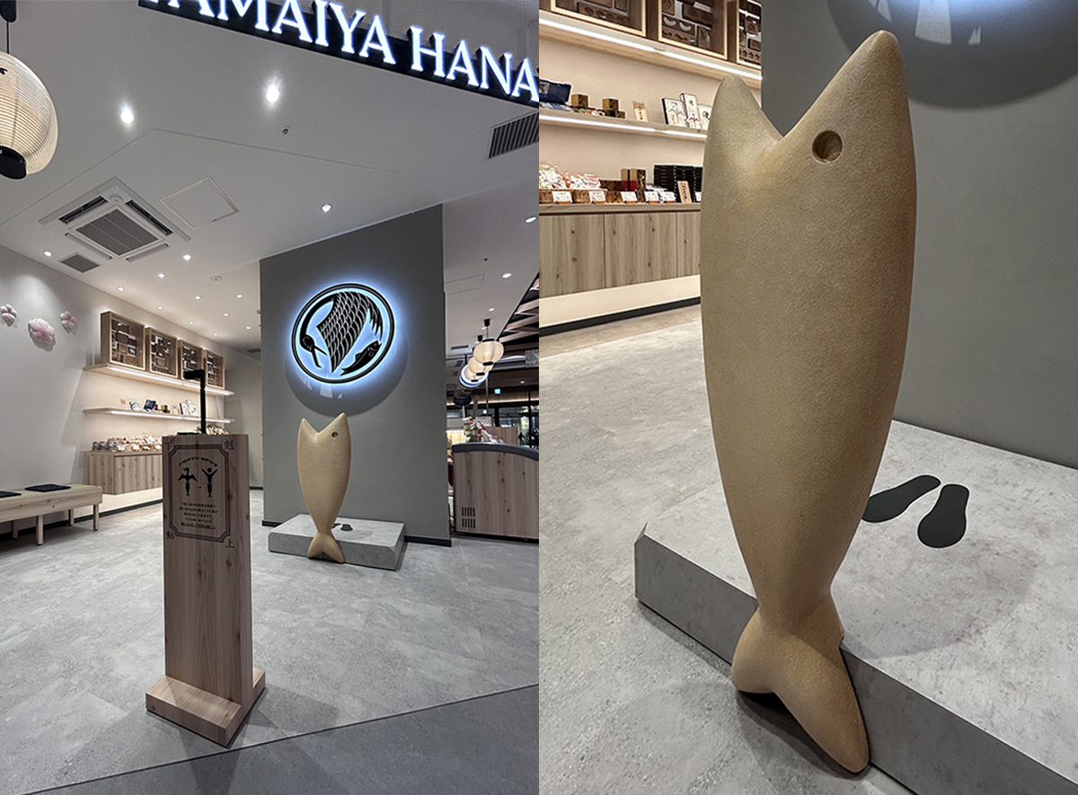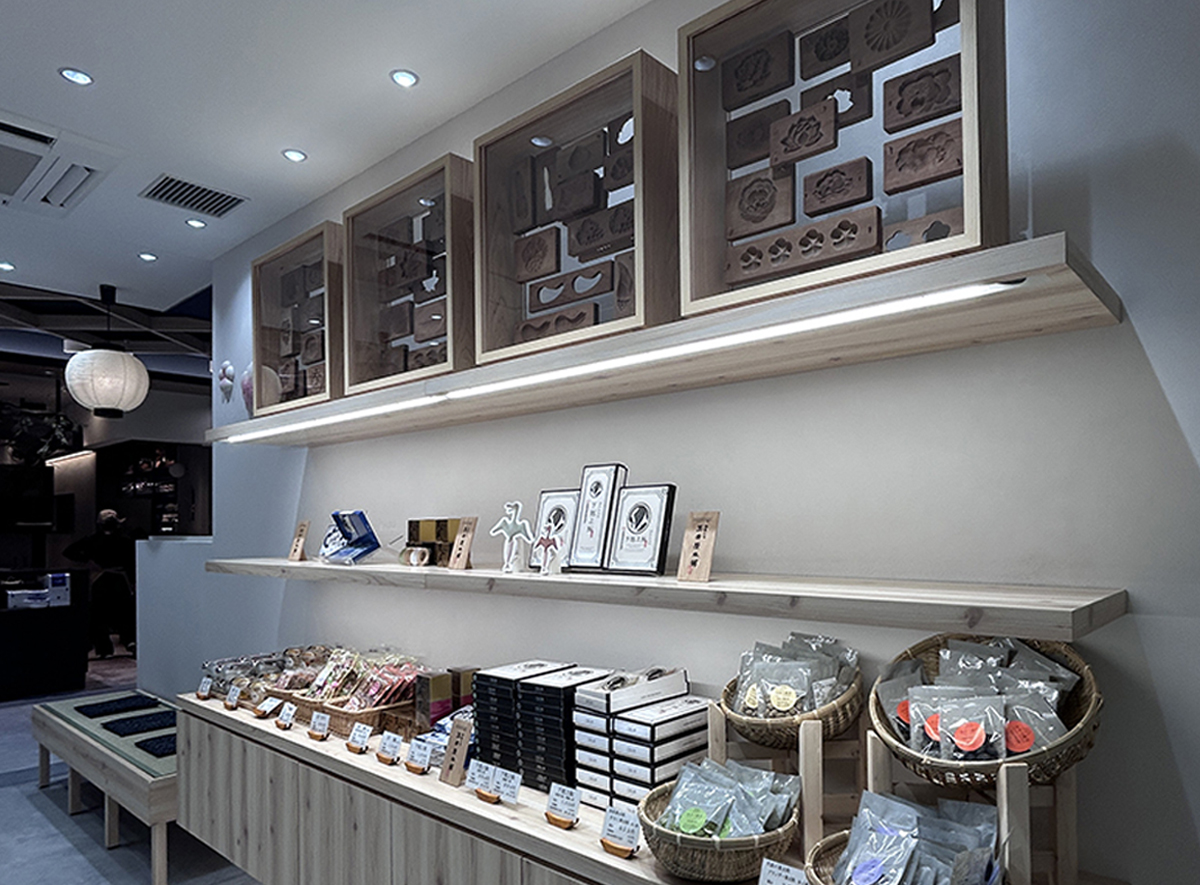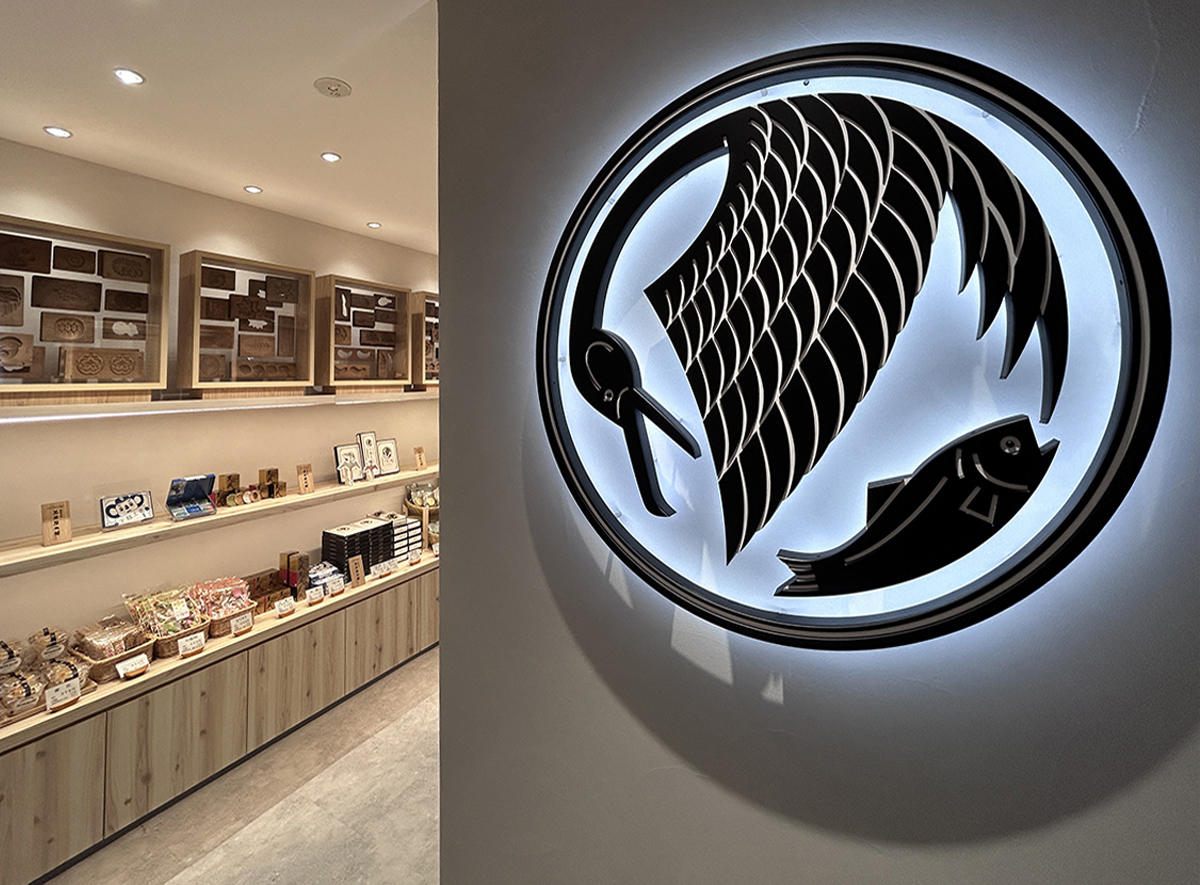 老舗・玉井屋本舗が掲げる “伝統と挑戦の共存” を空間に込めました。 和紙提灯や菓子木型といった文化的モチーフを、現代的なデザインと調和。 岐阜ならではの温かみを感じる佇まいに仕上げています。 店内には、銘菓「鮎菓子」をモチーフにした3Dフォトスポットを設置。 子どもから大人まで楽しめる体験が、商品の魅力をより引き立てています。 また、本店に眠っていた和菓子木型を再活用し、新たな商品開発も進行中。贈答から日常使いまで、幅広い提案を展開します。 店舗設計から商品開発まで一貫した革新のある遊び心で、 昔と今を融合し新たな「ものがたり」が未来へと繋げていきます。
