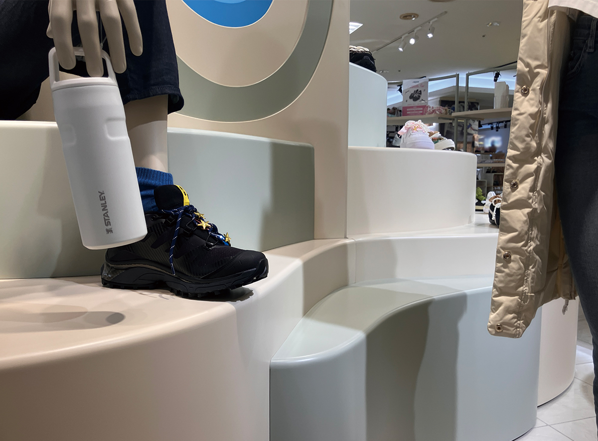 大丸京都店のスニーカーを中心としたシューズ売り場「KARASUMA SHOES TERRACE」のリニューアルに伴い、イベントスペースで使用される什器およびツール備品の提案を行いました。